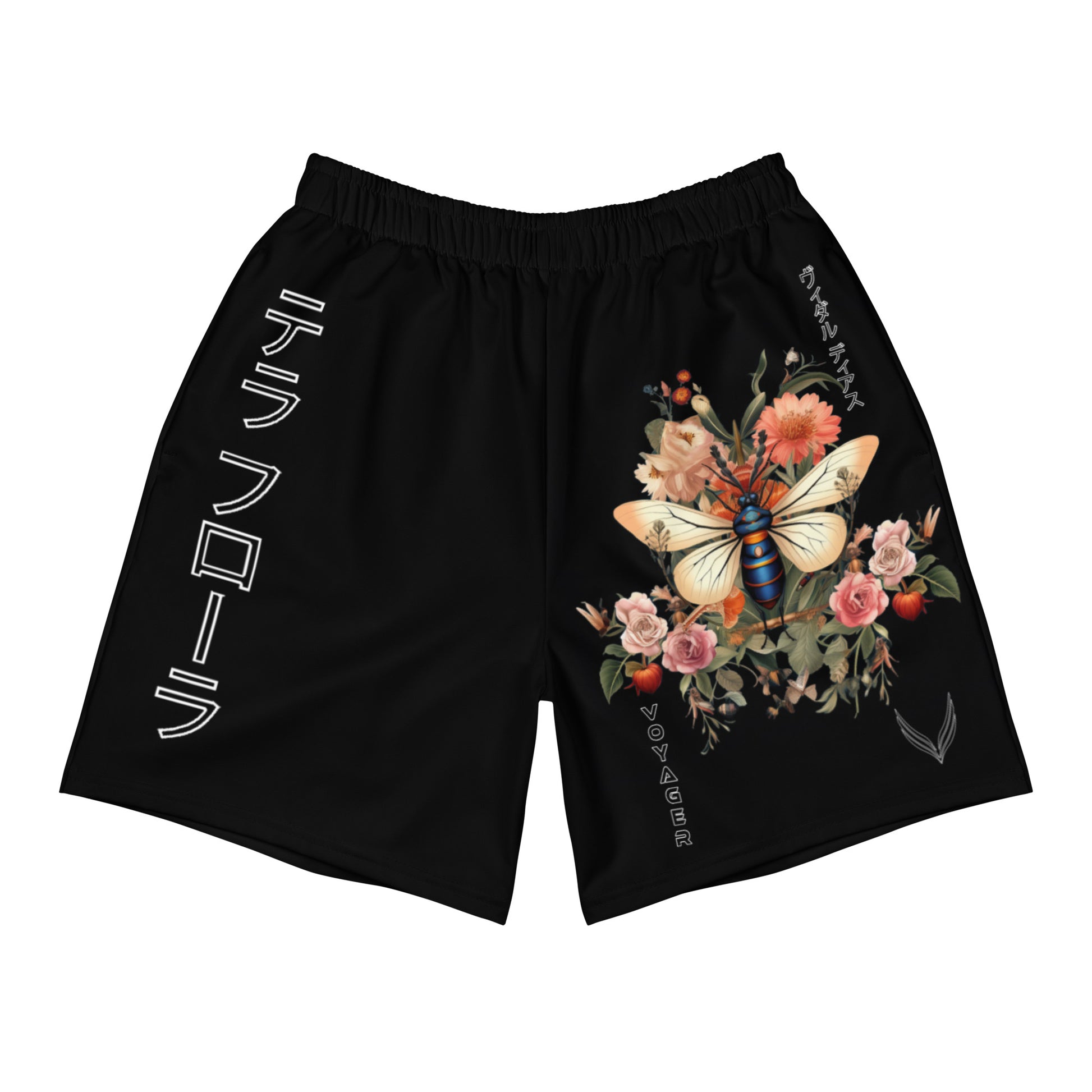 The hallmark of the ButterBeetle Recycled Athletic Shorts is the exquisite representation of the mythical Butter Beetle. Alongside the corresponding Japanese text, this unique design is a celebration of strength, perseverance, and spiritual transcendence. It captures the spirit of the formidable creatures that inhabit the forests of Terra Flora.