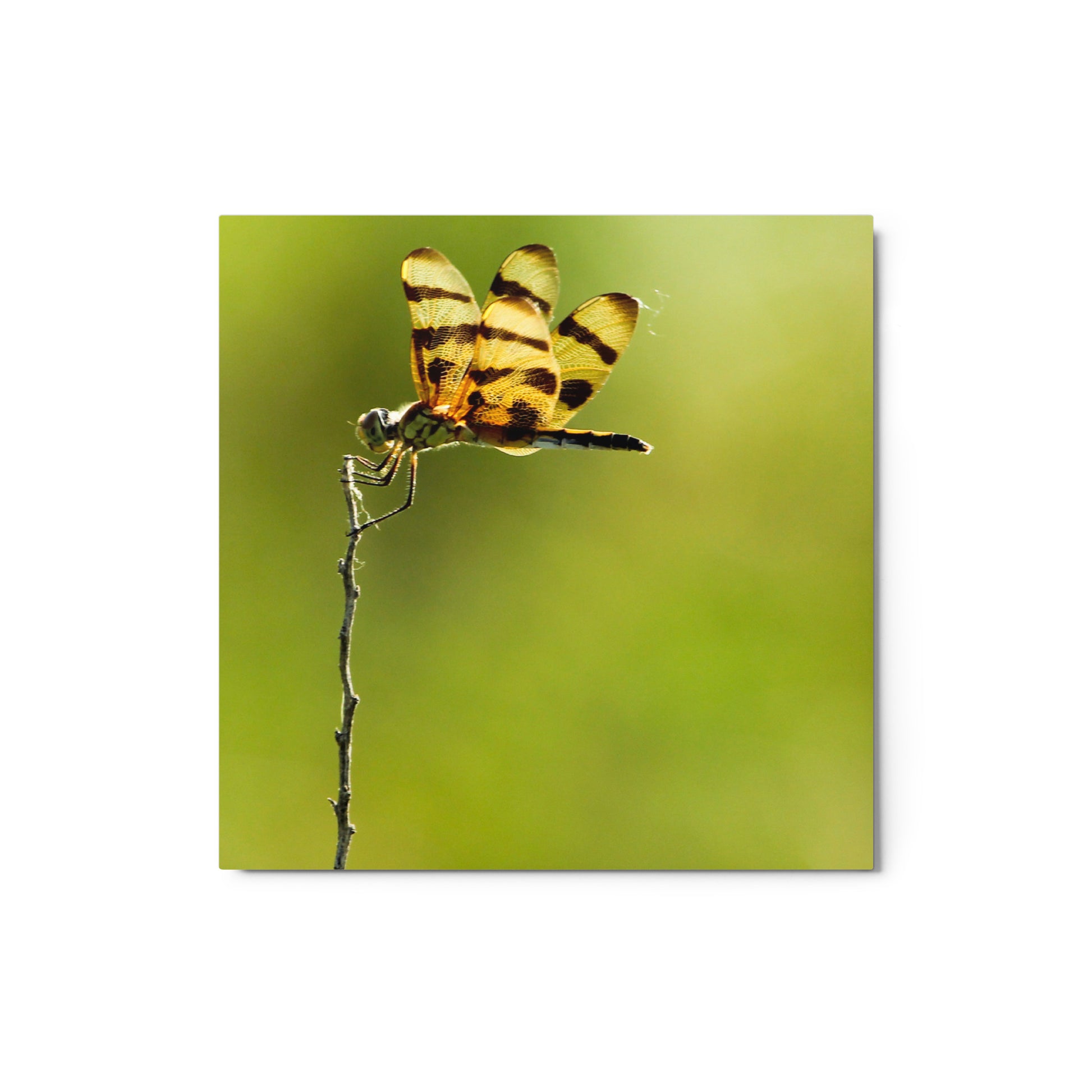 ทันใดนั้น ฉันสังเกตเห็นแมลงปอตัวหนึ่งนั่งอยู่บนกิ่งไม้ และอดไม่ได้ที่จะประหลาดใจกับความงามของมัน สิ่งมีชีวิตที่สง่างามนี้ยืนอยู่ที่นั่นชั่วนิรันดร์ จากนั้นจึงกางปีกออกกว้างแล้วมองตรงมาที่ฉัน โดยสัญชาตญาณ ฉันหยิบกล้องขึ้นมาและจับภาพช่วงเวลานี้อย่างรวดเร็ว